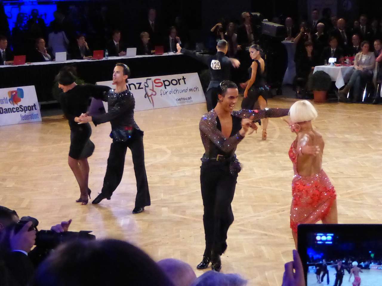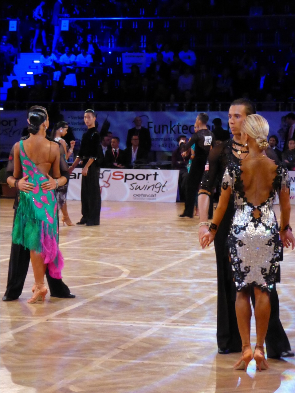 20:55: Das 1/4 Finale ist vorbei. Goffredo/Matus explodieren förmlich auf der Fläche. Marius und Krystina machen es ihnen gleich und haben einen Großteil des Publikums auf ihrer Seite! Es bleibt spannend! Tsaturyan/Gudyno sind noch sehr ruhig am Parkett und wirken sehr gelassen, zeigen trotzdem eine TOP-Qualität, vor allem wahrscheinlich rhythmisch das beste Paar! Wie es auch bei dem einen oder anderen Bild zu sehen ist, die ich wieder für euch aufgenommen habe. Leider in etwas schlechterer Qualität da das Equipment etwas Probleme mit der Belichtung von den Zuschauerrängen aus hat. Ich hoffe ihr freut euch trotzdem!