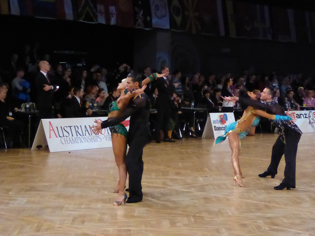 14:50, Samstag 21.11.2015: Die erste Runde der Weltmeisterschaft in den lateinamerikanischen Tänzen ist vorbei. Die Paare Paare zeigen vor zahlreichem Publikum ihr Können und werden dafür schon von der ersten Runde an mit tobendem Applaus und Zurufen motiviert! Ganz klar zu erkennen ist auch die Ungewissheit, wer denn den Titel schlussendlich sein Eigen nennen kann!